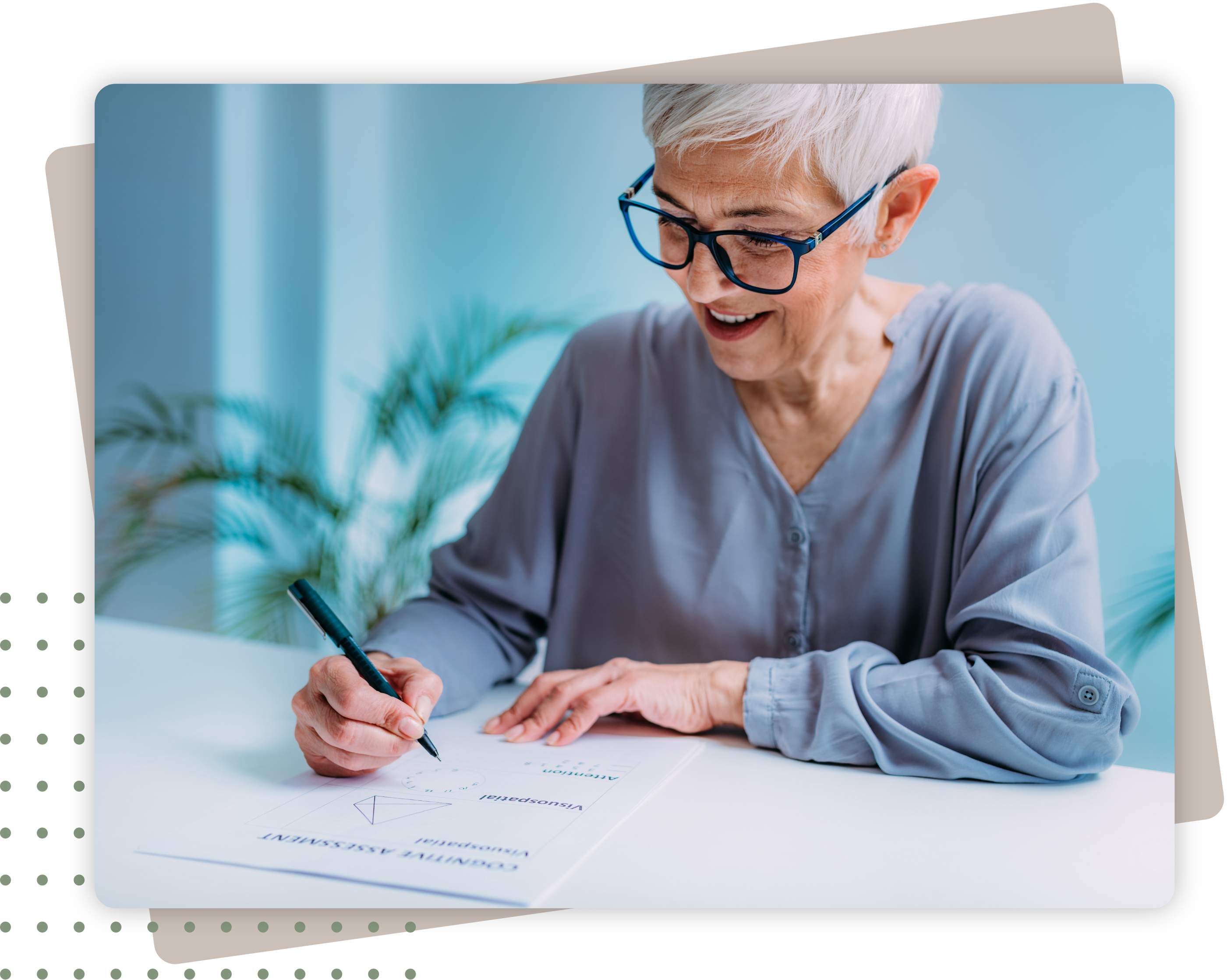 Un bilan d'ergothérapie est établi afin d'évaluer l'indépendance et l'autonomie fonctionnelle de la personne, ainsi que son environnement.
